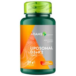 Liposomal D3 + K2 Forte - Adams Supplements Bone System Support, 30 capsule: vitamina D3 100 mcg / 4000 UI si vitamina K2 500 mcg sustin imunitatea, sanatatea oaselor si contribuie la utilizarea corecta a calciului si a in organism. Tehnologia lipozomala protejeaza ingredientele active pentru a spori rata de absorbtie si eficienta. Sprijina mentinerea sanatatii oaselor si a dintilor si contribuie la functionarea normala a sistemului muscular. Vitamina K2 sustine sanatatea sistemului osos si coagularea normala a sangelui. Supliment alimentar recomandat sportivilor sau persoanelor active care solicita sistemul muscular, persoanele cu expunere redusa la soare, pentru mentinerea sanatatii oaselor (varstnici, femei, persoane sedentare).
