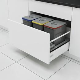 Cosul de gunoi Praktico Orion, incorporabil, este o solutie eleganta si practica pentru gestionarea deseurilor in bucatarie. Conceput pentru a fi montat in sertar, acest model dispune de trei recipiente spatioase si trei tavite pentru sacii menajeri. Designul este compact si modern, realizat din plastic rezistent de inalta calitate, usor de curatat. Este potrivit pentru corpuri de mobila cu latimea de 800 mm si o inaltime de 300 mm, oferind o integrare discreta si functionala. Ideal pentru cei care doresc o bucatarie ordonata, curata si eco-responsabila.