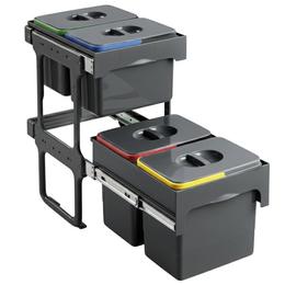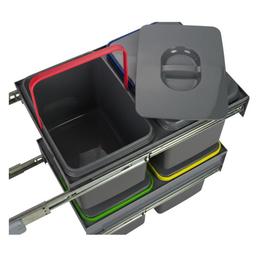 Cos de gunoi Tandem Short incorporabil, colectare selectiva, cu 2 compartimente x 15 litri si 2 compartimente x 12 litri