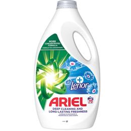 Detergent Automat Lichid - Ariel +Touch of Lenor Fresh Air, 70 spalari, 3.15 L: detergent automat lichid concentrat, conceput pentru a oferi o curatare profunda si o prospetime de durata a rufelor. Formula sa eficienta indeparteaza murdaria, petele si mirosurile neplacute, asigurand rezultate excelente chiar si la temperaturi mai scazute sau in cicluri scrute de spalare. Datorita parfumului Touch of Lenor Fresh Air, hainele raman placut parfumate pana la 1 saptamana*, inclusiv dupa depozitarea in dulap. Detergentul actioneaza in profunzimea fibrelor, lasand rufele curate, ingrijite si proaspete dupa fiecare spalare. Potrivit pentru utilizare zilnica si compatibil cu toate tipurile de masini de spalat.