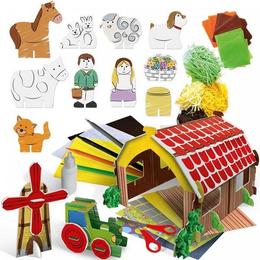 Contine: Ferma 3D de construit, 12 subiecte modelate, 4 plicuri de hartie absorbanta, hartie servetel patrata, 3 foi de pasla, model de decupat, 4 markere colorate, lipici, foarfece, instructiuni