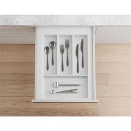 Conceput pentru sertarele cu latimea exterioara de 400 mm, modelul se potriveste sertarelor cu adancimea de 450–500 mm. Datorita designului flexibil, acest suport de organizare pentru tacamuri poate fi ajustat cu usurinta, marginile se pot taia astfel incat dimensiunile sa se potriveasca in intervalul 350–290 mm si 490–420 mm. Astfel, produsul se adapteaza chiar si mobilierului realizat pe masuri speciale.