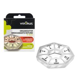 Organizator medicamente rotund VitaPlus, cu 7 compartimente, design compact si portabil