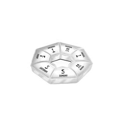 Designul rotund imparte produsul in 7 compartimente distincte, cate unul pentru fiecare zi a saptamanii, clar marcate si usor de identificat. Este suficient sa rotesti capacul pentru a accesa doza zilei, fara riscul de a deschide din greseala alte compartimente.