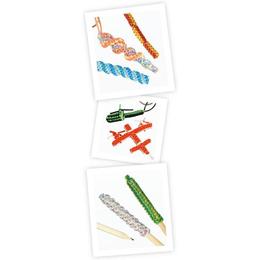 Set creatie: Scoubidous: Set pentru realizarea a 12 împletituri diferite prin tehnica Scoubidou. Pe lângă activitățile sugerate, setul conține și materiale suplimentare pentru a vă crea singuri alte împletituri. Conține 55 de șnururi în total, acestea având diverse modele: colorate, metalice, transparente sau cu sclipici.