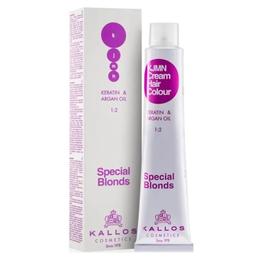 Vopsea Permanenta - Blond Ultra Special cu Nuanta de Violet - Kallos KJMN Cream Hair Colour Special Blonds, nuanta 12.20 Special Ultra Violet Blond, 100 ml: vopsea de par profesionala cu o formula inovatoare, cu ingrediente speciale precum uleiul de argan si keratina, ce protejeaza eficient parul si scalpul in timpul procesului de vopsire. Este disponibila intr-o mare varietate de nuante si ofera un rezultat natural de lunga durata, asigurand o acoperire perfecta a firelor albe si o culoare intensa, plina de stralucire.